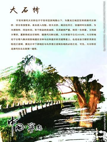 - 渤海国大石桥:是渤海国时期重要交通设施,由玄武岩石块砌成,桥长约 50 米,宽约 9 米,呈拱形,坚固耐用,历经千年仍保存完好,是研究渤海国交通和建筑的重要实物资料